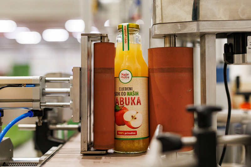 Iz naših voćnjaka dolaze jabuke najvišeg kvaliteta koje se ručno beru i selektuju. Dio jabuka koristi se za proizvodnju 100% prirodnog cijeđenog soka bez dodatka vode, šećera i bilo kakvih aditiva, koji se nakon pasterizacije pakuje u staklenu ambalažu.